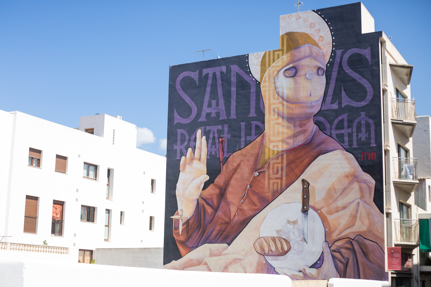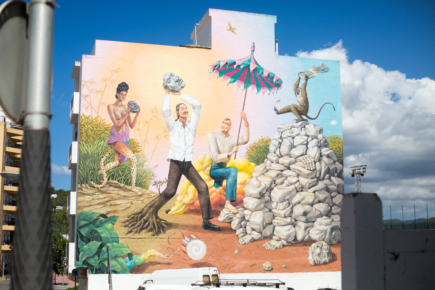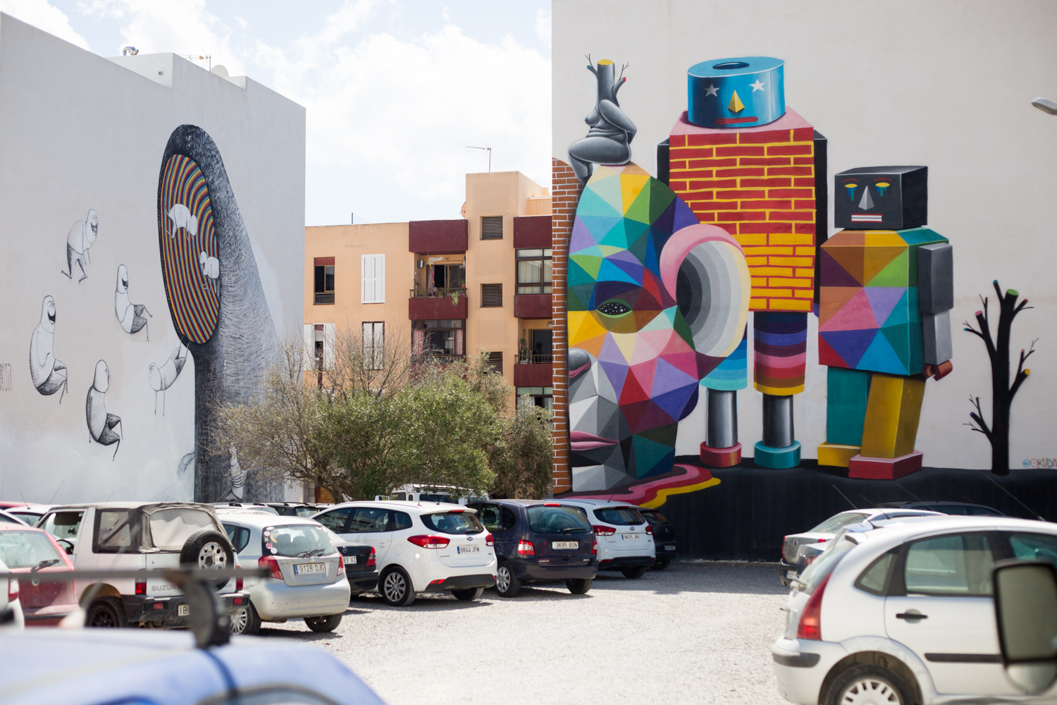 This one may be familiar if you’ve ever been to Ibiza Rocks. Located just by the entrance ‘Appearance’ was created in 2012 by Ukrainian street art duo Interesni Kazki!