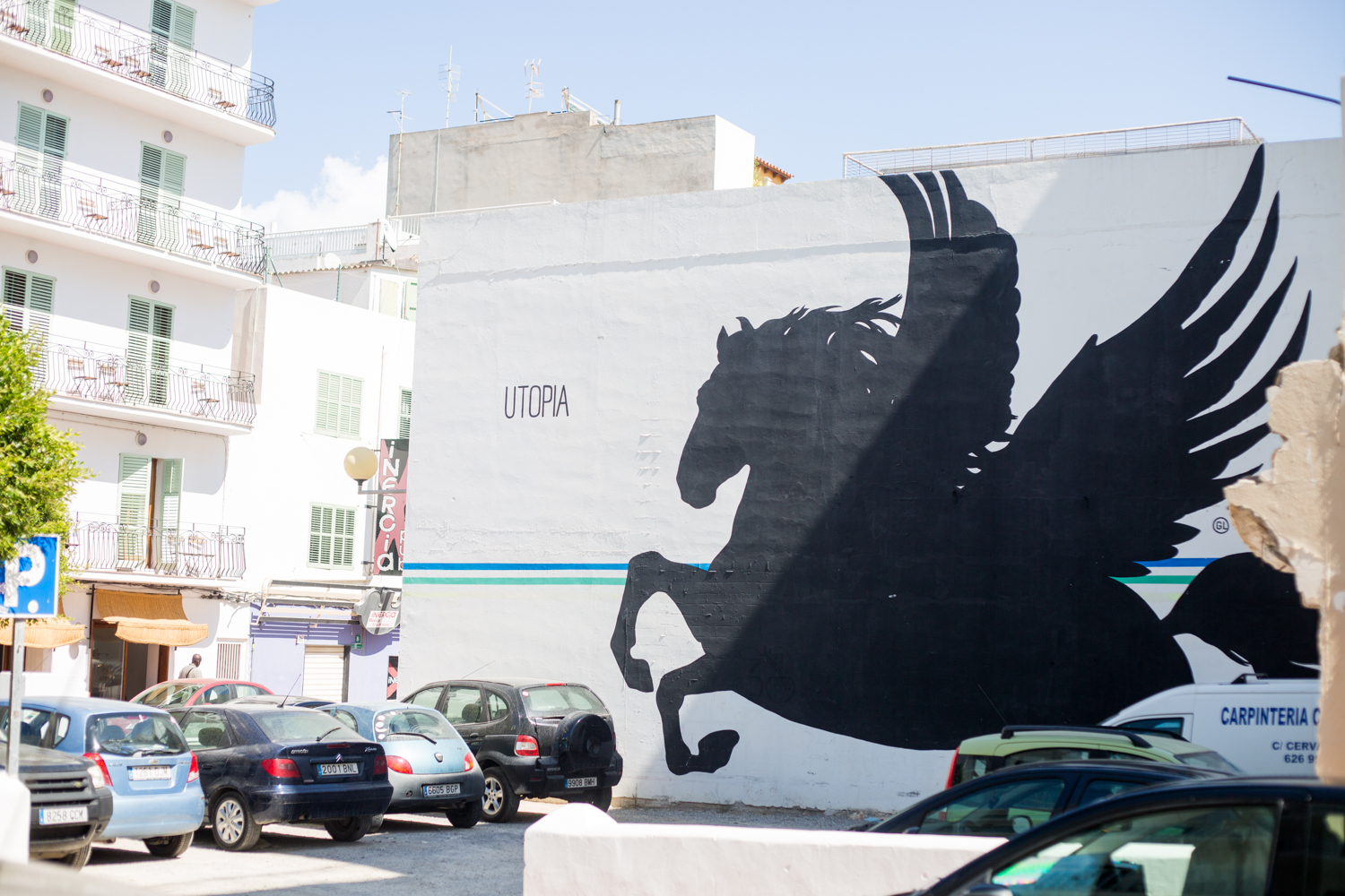 Below is one of the most famous and photographed murals of the town, located not too far from the bus station beside the roundabout of Es Verru and Cerrer Bisbe Torres. This complex painting by Sheffield based street artist Phlegm is called ‘Control’ which shows a robot examining parts of his own brain!